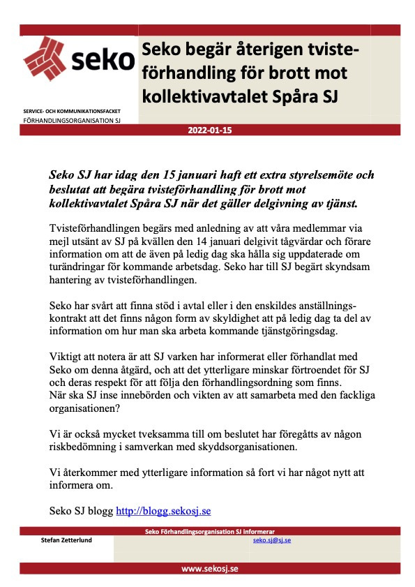 Spåra SJ - Inställd återkommer om nytt datum